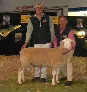 AVAGO 25/05 "ATOMIC" Avago 25/05 set new standards at Adelaide Royal when he recorded one of the highest scanned muscle measurements seen in the White Suffolk breed and he is only an August drop ram. Recording a 51mm eye muscle depth, he had the top scanned depth of the 300 White Suffolk exhibits at Adelaide and was close to the highest measurement from all breeds in the shed. Consequently this young sire attracted plenty of attention and comment and was described by many as "a young ram ram with unbelievable muscling". A very correct ram with good bone and a very clean soft head, this young sire has great pedigree including Detpa Grove 100/99, "Supreme", Leahcim 127/94 "Meatman" and Aylesbury Farm 3/92. This young sire is one that will add muscle and carcase length to any breeding program without losing type.