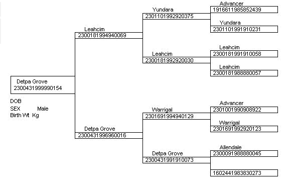 Grove 154/99 Full brother to one of the top Lambplan ranked ewes. (Detpa Grove 145/98). Very long, tall ram with clean head and points. Lambplan EBV's - March 2002 run
