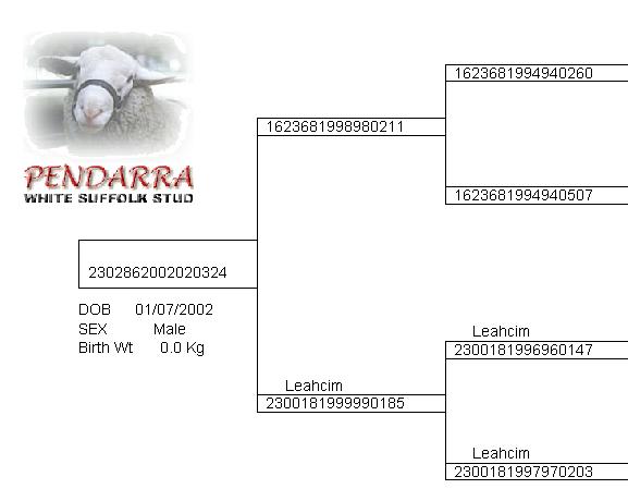 324/02 A White Suffolk appendix ram with outstanding muscling and bone. A son of Kurralea "5 Star" with a clean head and great length. Has lambs on the ground at Sonning which are outstanding and he will be used next year in their ET program. An oustanding carcase sheep that will provide plenty of muscle and high yielding carcases without sacrificing type. Lambplan EBV's - 1/9/03